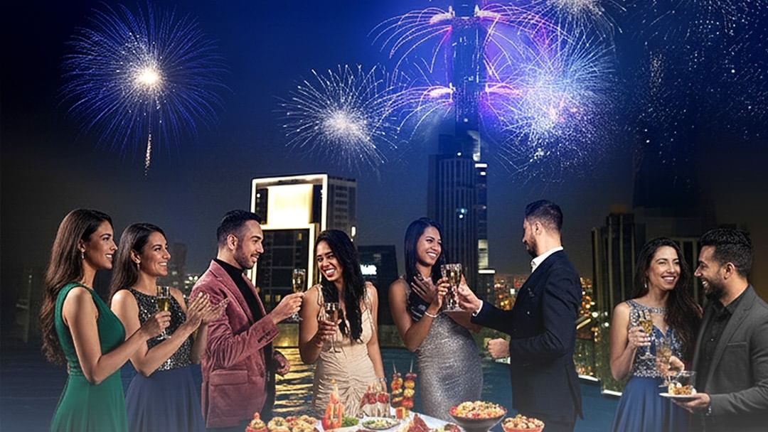 From coastal horizons to Burj Khalifa views or your exclusive Poolside Island, each moment shimmers with glamour. Complete the night with late-night treats from the live stations and let the countdown unfold in true Paramount style.